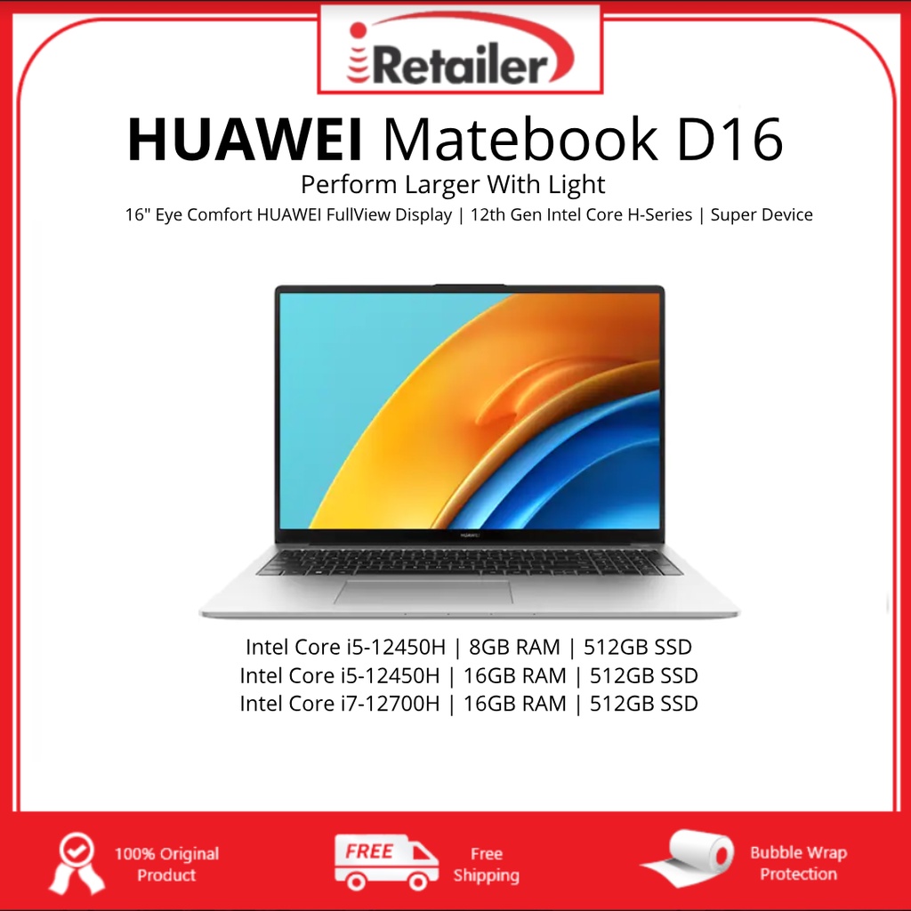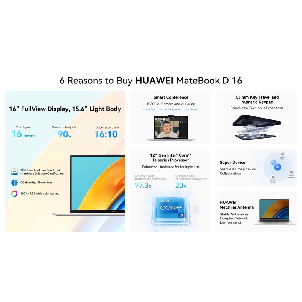 (NEW) HUAWEI Matebook D16 | 12th Gen H-Series Processor | 16" Eye Comfort DIsplay | Super Device- 100% Original Malaysia