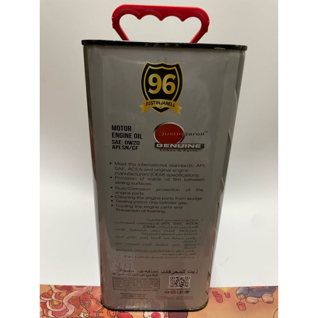 (NEW ARRIVAL) 96 JUSTINJARELL Motor Engine Oil 0W20 FULLY SYNTHETIC 4L API SN/CF
