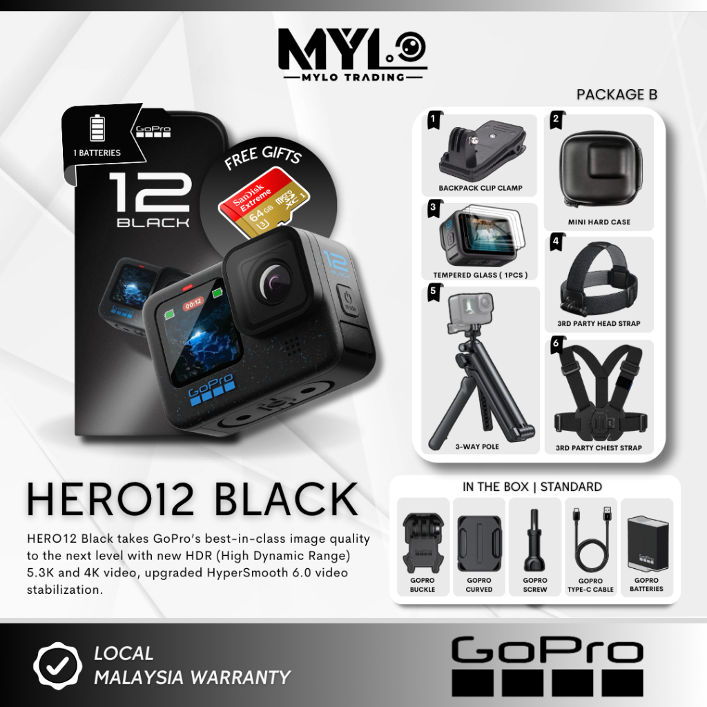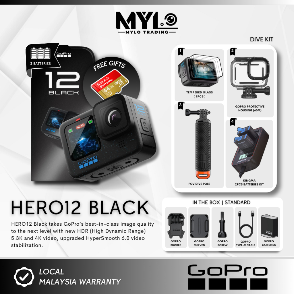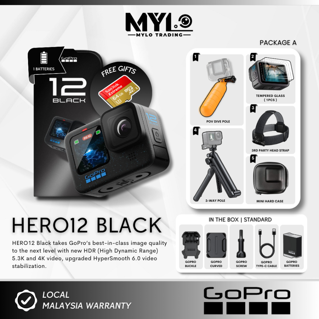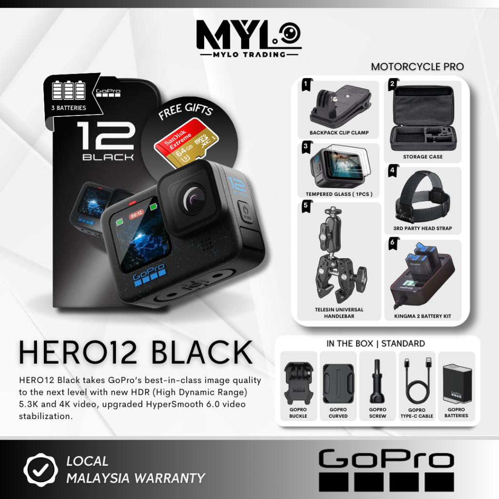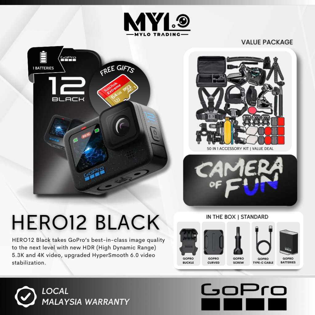(READY STOCK) - GoPro HERO 12 Black / HERO12 | 5.3K60 | 27MP | Hypersmooth 6.0 | 10-Bit HDR Video Action Camera