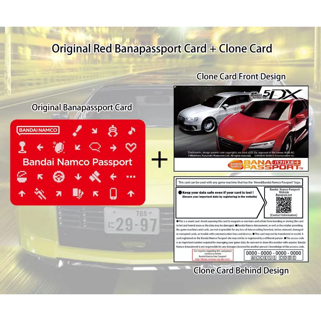 (NEW & Unregister)Banapassport Blank Card+Clone Card Combo Set Wangan Midnight 5Dx Design