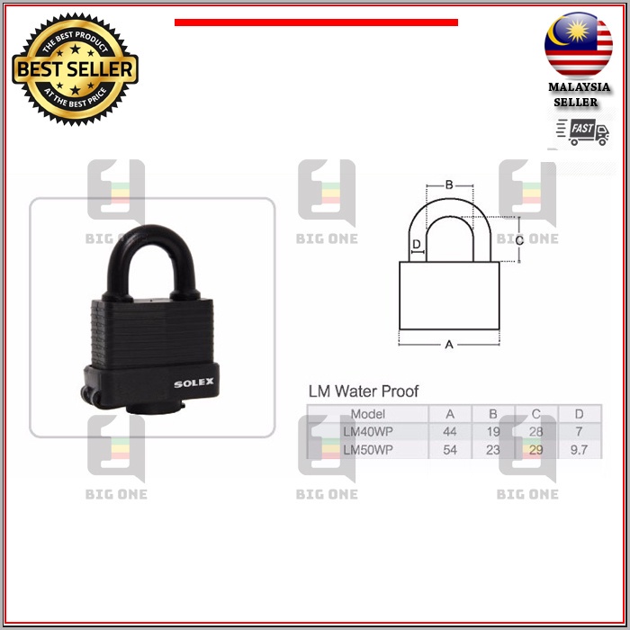 (ORIGINAL) SOLEX LM50WP 50MM WEATHER RESISTANT PADLOCK ANTI RUST PADLOCK HIGH SECURITY PADLOCK MANGGA SOLEX