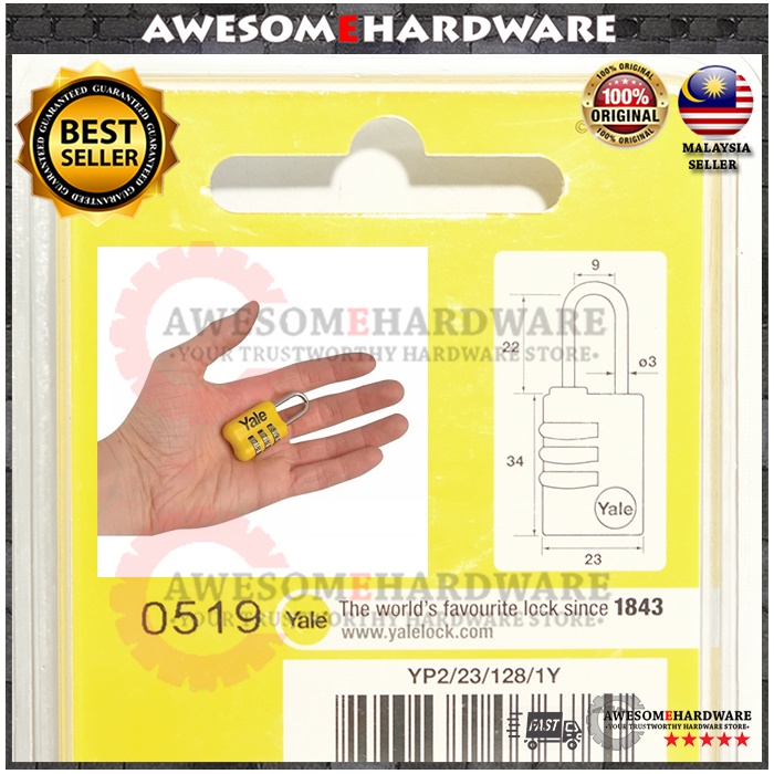 (ORIGINAL) YALE YP2/23/128/1 3 DIAL COMBINATION LOCK NUMBER LUGGAGE LOCK TRAVEL LOCK YP2