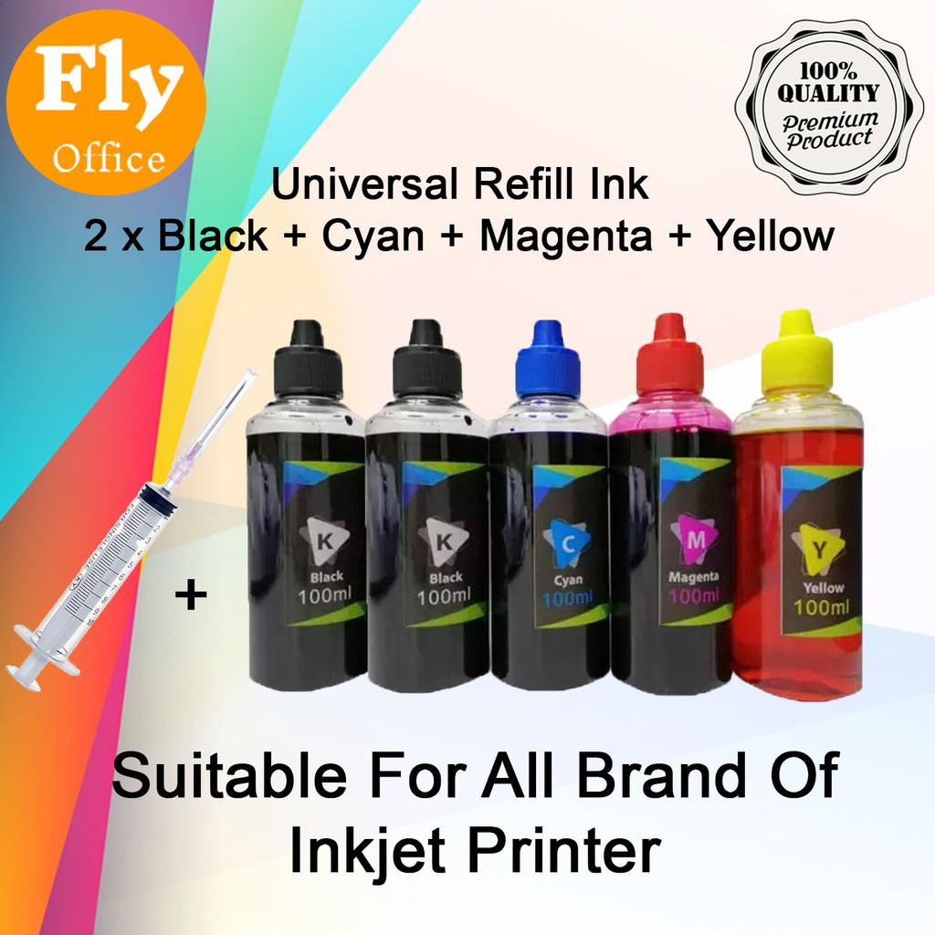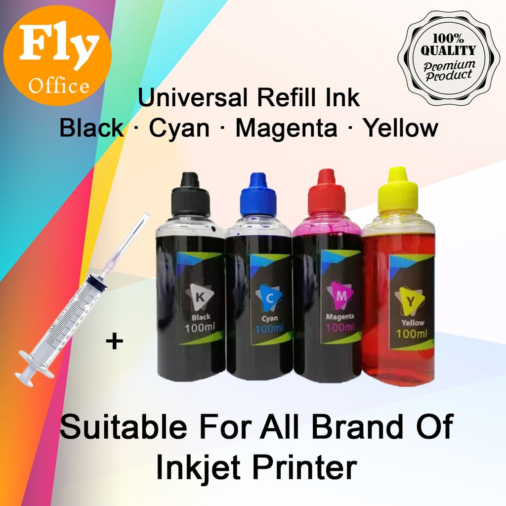 (Optional) Universal Ink Refill Dye Ink Black Cyan Magenta Yellow 100ml For BR / Canon / EPS / HP Printer