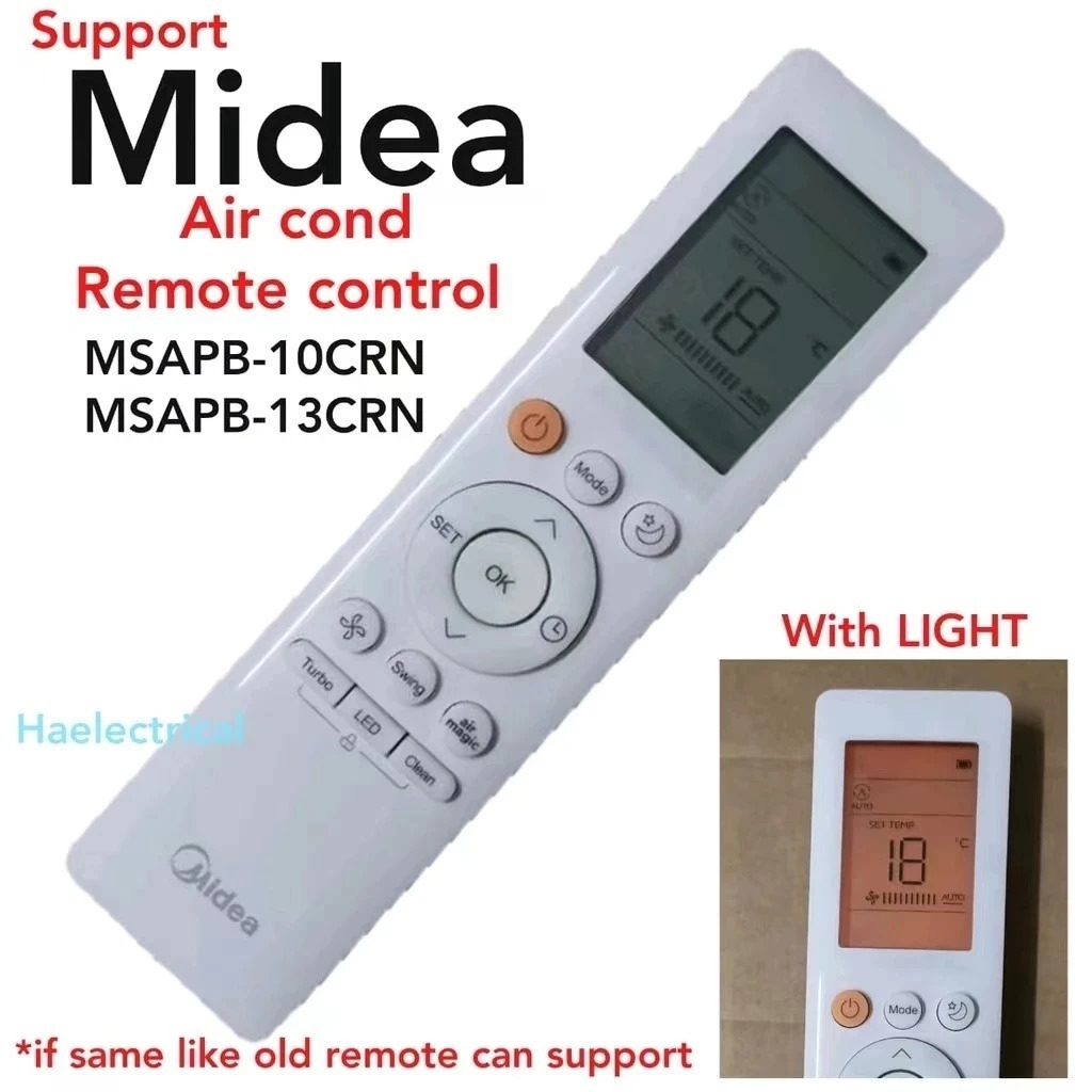 (0RlGlNAL) Air Cond Remote Control MIDEA RG10B1(B2)/BGEF , MSAPB-10CRN , MSAPB13CRN (NO SUPPORT RG10B1(B)/BGEF)