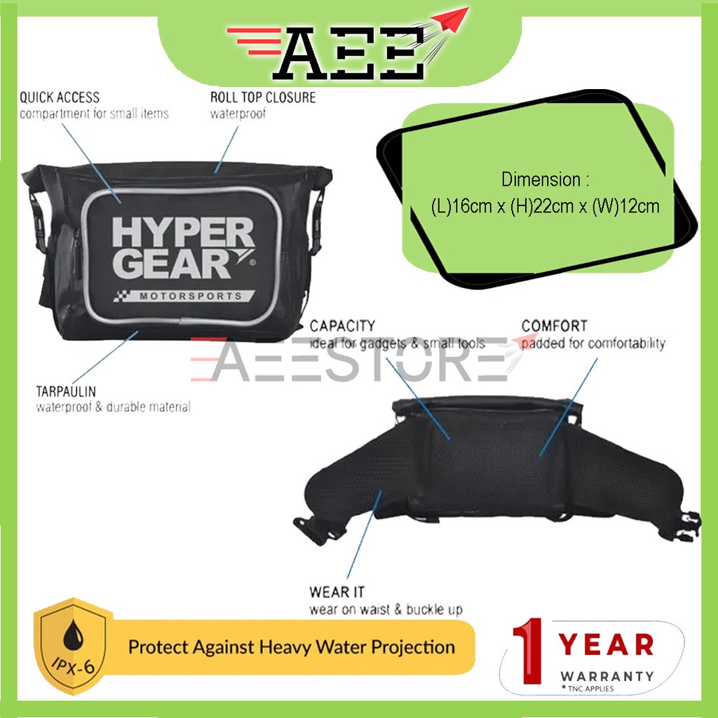 (Original) Hypergear Waist Pouch Motorsports - Medium ( Waterproof / Durable / Motor Pouch / Outdoor Bag / Beg )
