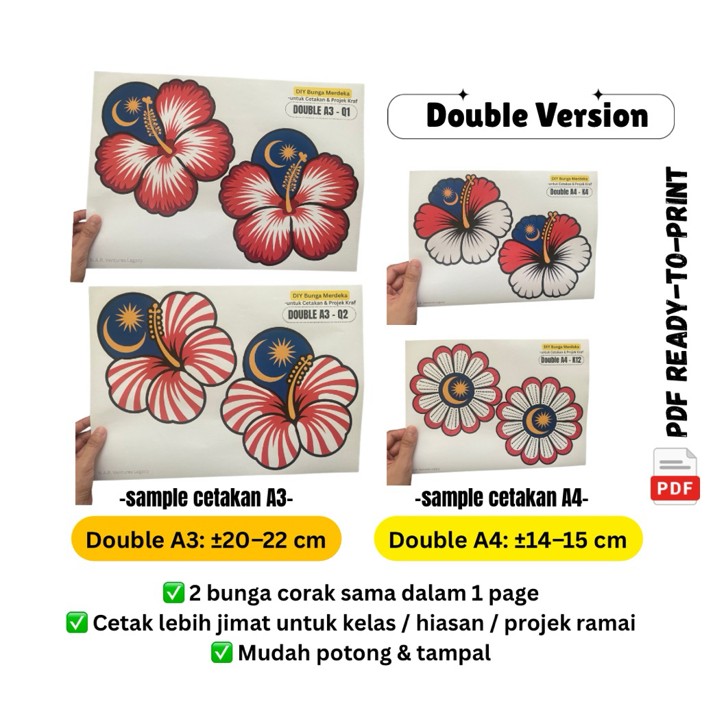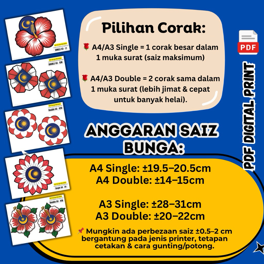 (PDF) Big Pack Bunga Kebangsaan | Single & Double A4/A3 | Hiasan Hari Malaysia & Tahun Baru Malaysia