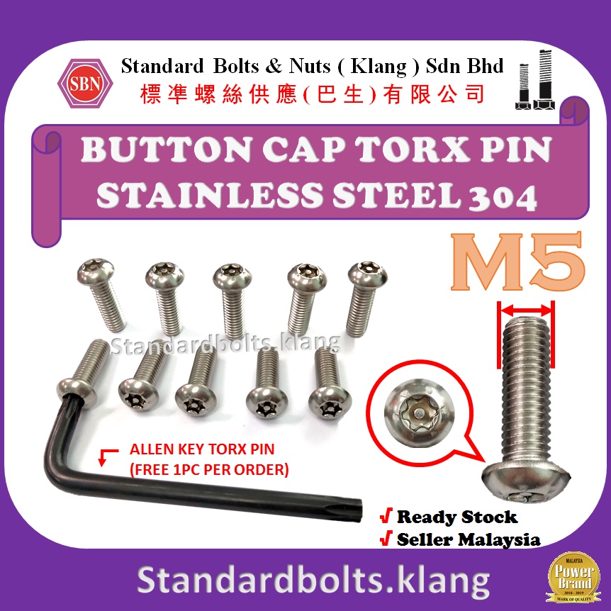 (Per Pack) [SIZE: M5] Stainless Steel 304 Button Cap Torx Pin With Pin Tamper Proof Anti Theft Security Screw