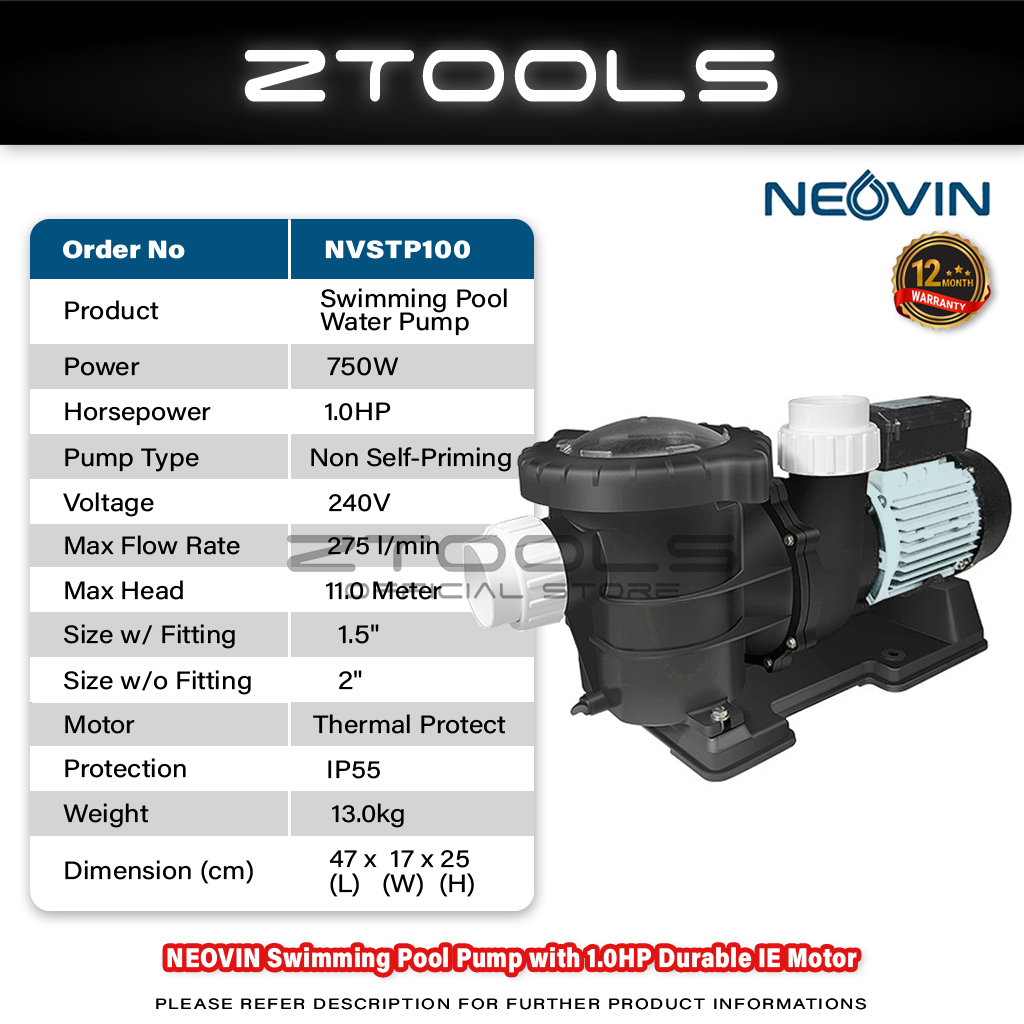(Premium) Neovin 2" Swimming Pool Pump | 1HP & 2HP & 3HP | Pam Kolam Renang | Water Booster Pump