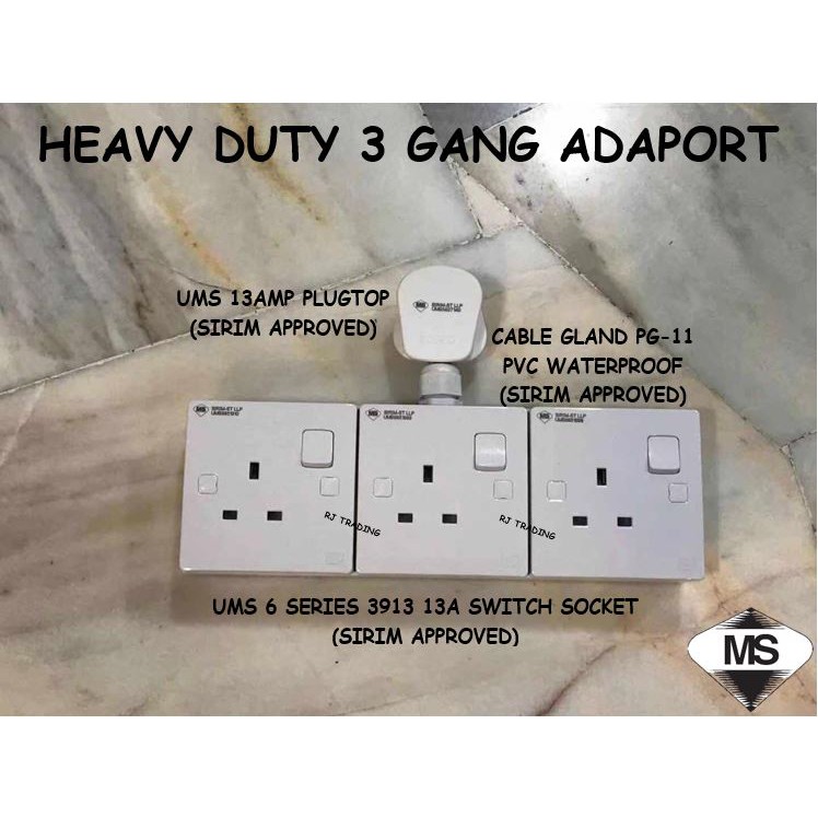 (READY STOCK) HEAVY DUTY 2GANG AND 3GANG EXTENSION WALL SOCKET / ADAPORT (UMS 3913 SWITCH SOCKET UMS 13A PLUGTOP 70/0076