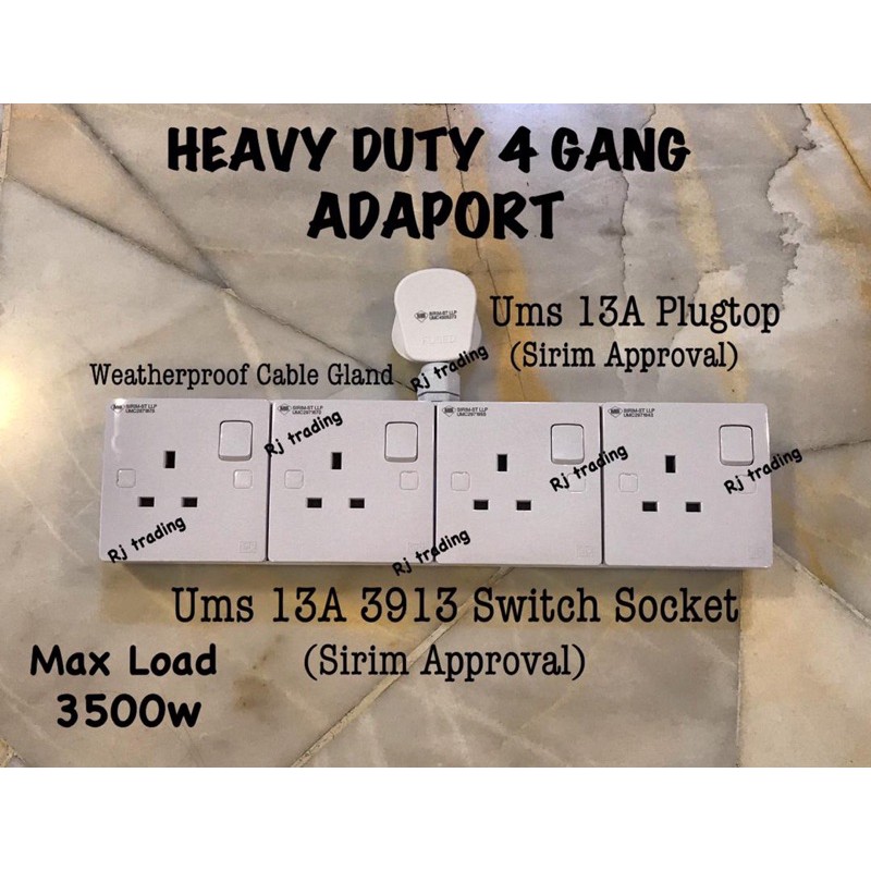 (READY STOCK) HEAVY DUTY 4GANG EXTENSION WALL SOCKET / ADAPORT (UMS 3913 SWITCH SOCKET UMS 13A PLUGTOP 70/0076