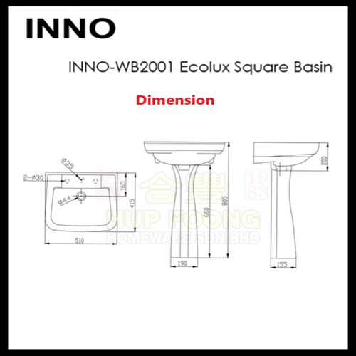 (READY STOCK) INNO WB 2001 Wall Hung Ceramic basin with bracket & wall plugs /vanity bowl / bathroom sink