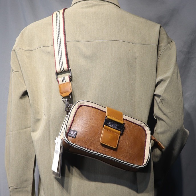 (READY STOCK) THREEBOX Culture Leather Sling Bag pouch (8") phone clutch 2 tone color shoulder bag Travel Beg Silang
