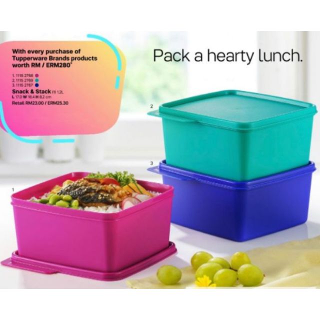 (READY STOCK) Tupperware snack n stack 1.25L (1 or 3pcs)