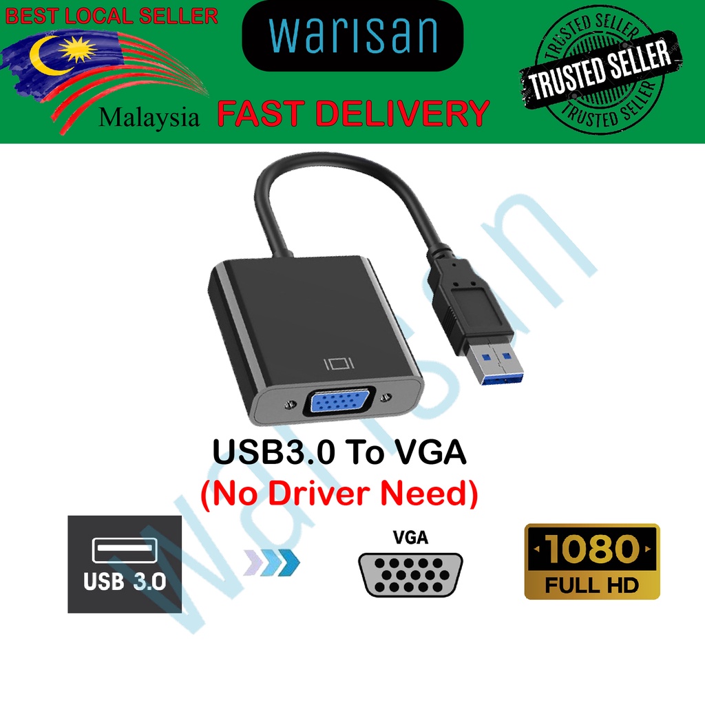 (READY STOCK) USB 3.0 TO HDMI/VGA DUAL Display Adapter Converter