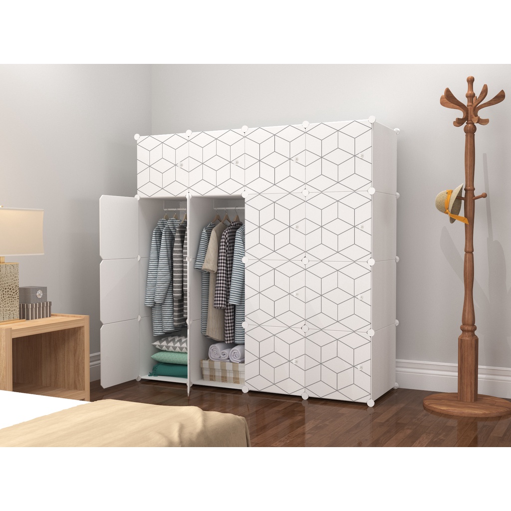 (READY STOCK) WHITE 16C Almari Karton DIY Children Cartoon Cabinet Wardrobe Foldable Rack Cupboard Cabinet