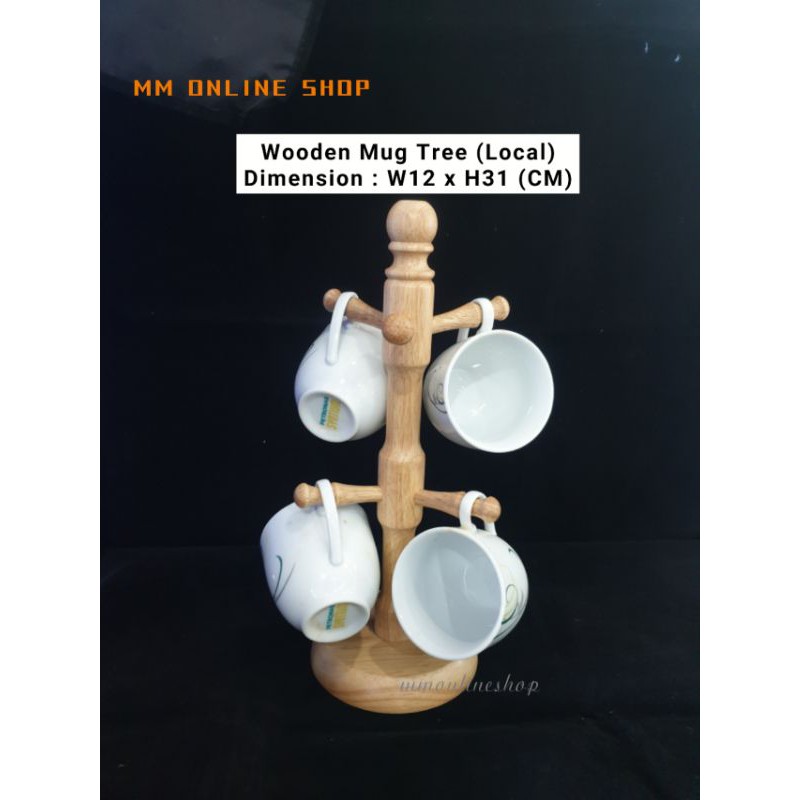 (READY STOCK) Wooden Mug Tree / Wooden Mug Holder / Rak Cawan Kayu - Local