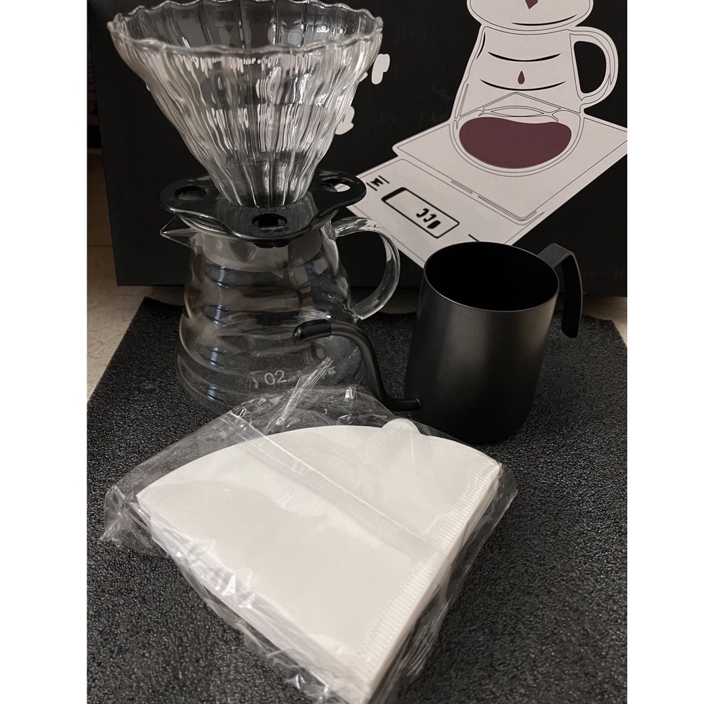 (READY STOCK)Filter Coffee Pour Over Starter Kit Gift Set Box Dripper Server Paper Gooseneck Set 4pcs