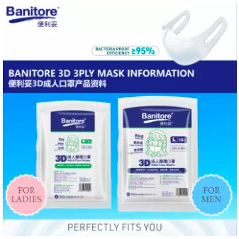 (Rdy Stock In KL ) BANITORE 3PLY DISPOSABLE FACE MASK (LADIES /MANSIZE) [10 pcs x 1 Pack]
