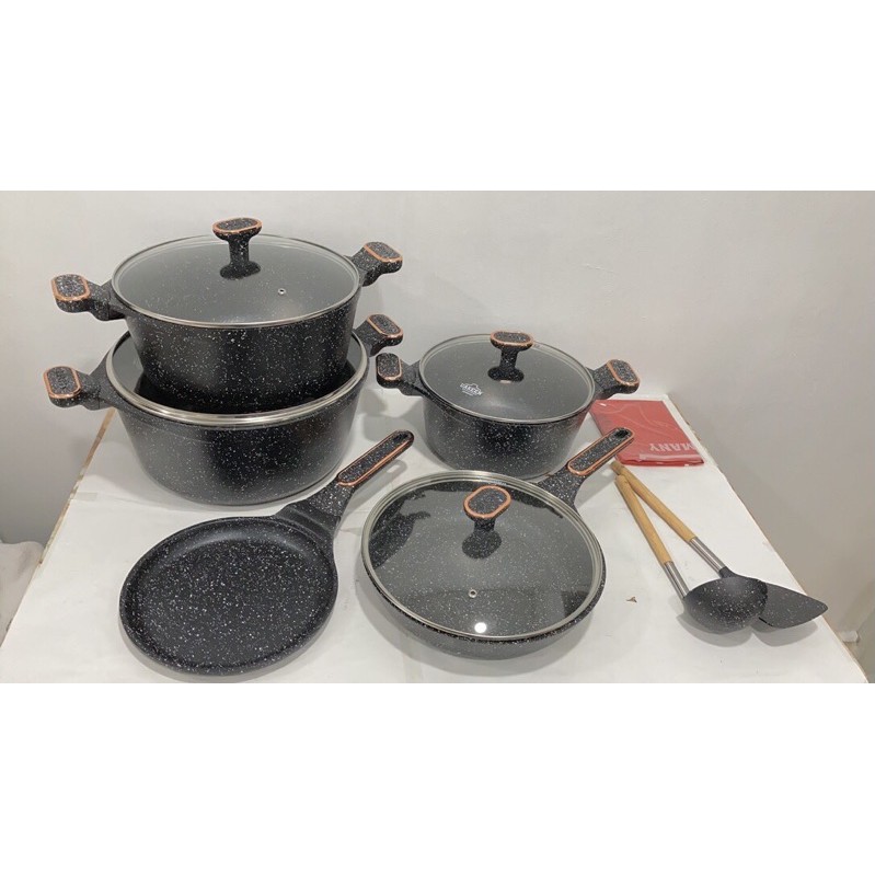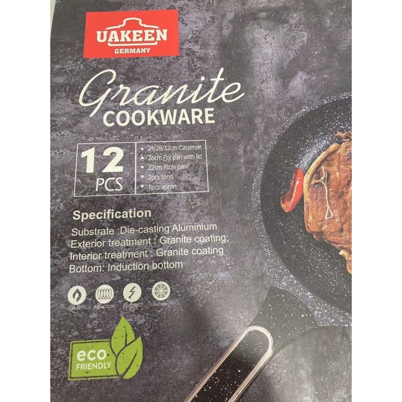 (Ready Stock!!) (VK-368) Uakeen Germany 12pcs Granite Non Stick Induction Black Cookware Set Periuk Viral Uakeen by Vak
