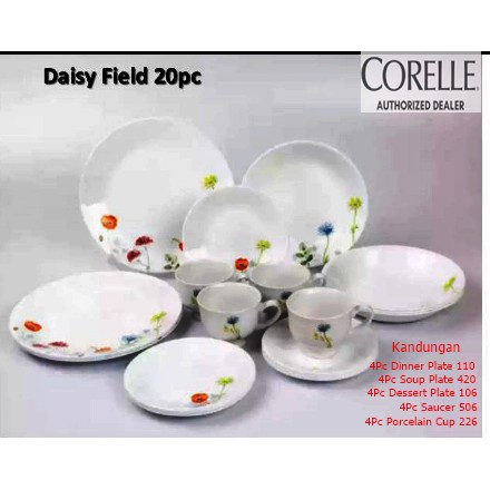 (Ready Stock!!) Corelle Daisy Field 20pc Dinnerware Set,16Pc Dinner Set,6Pc Square Dinner Set,Set Makan Corelle Daisy Fi