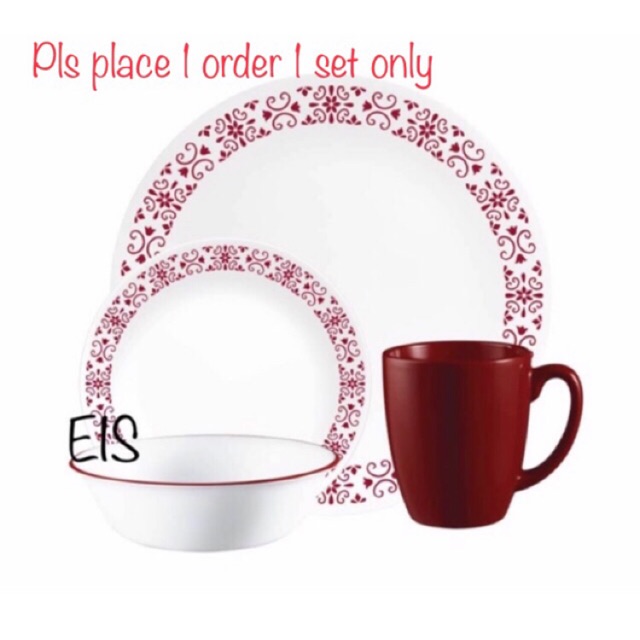 (Ready Stock!!) Corelle Red Trellis 16pcs Classic Dinnerware Set (16-RTL-PH) Livingware Dinner Serve Set