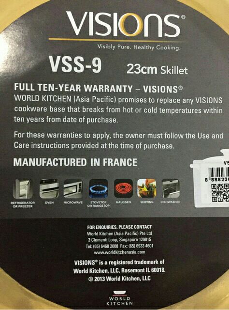 (Ready Stock!!) Visions 23cm Skillet (VSS-9) Cookware Frying Pan Frypan ORIGINAL(VSS-9) Visions 23cm Skillet/Frying Pan