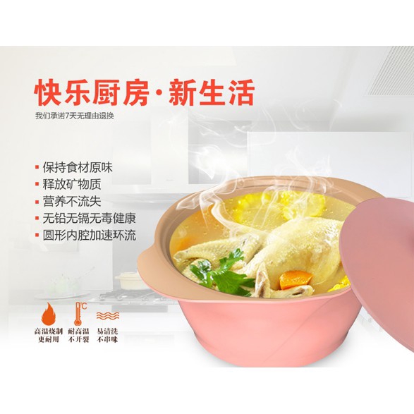 (Ready Stock) Ceramic Stone Cooking Pot (Rose Pink)