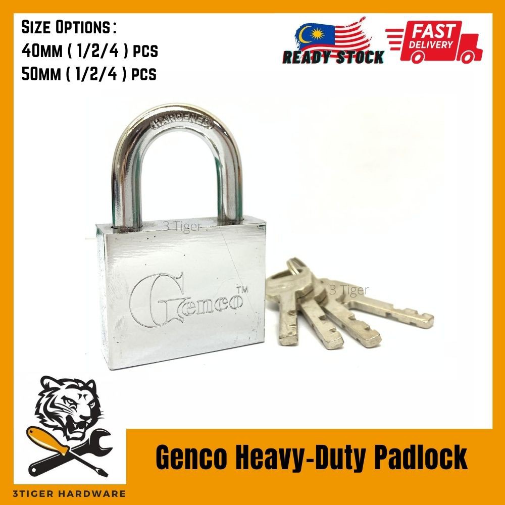 (Ready Stock) Genco Heavy-Duty PadLock Mangga Pintu Kualiti ISO9001 Quality Anti-Cut Lock Security Pad Lock 40mm 50mm