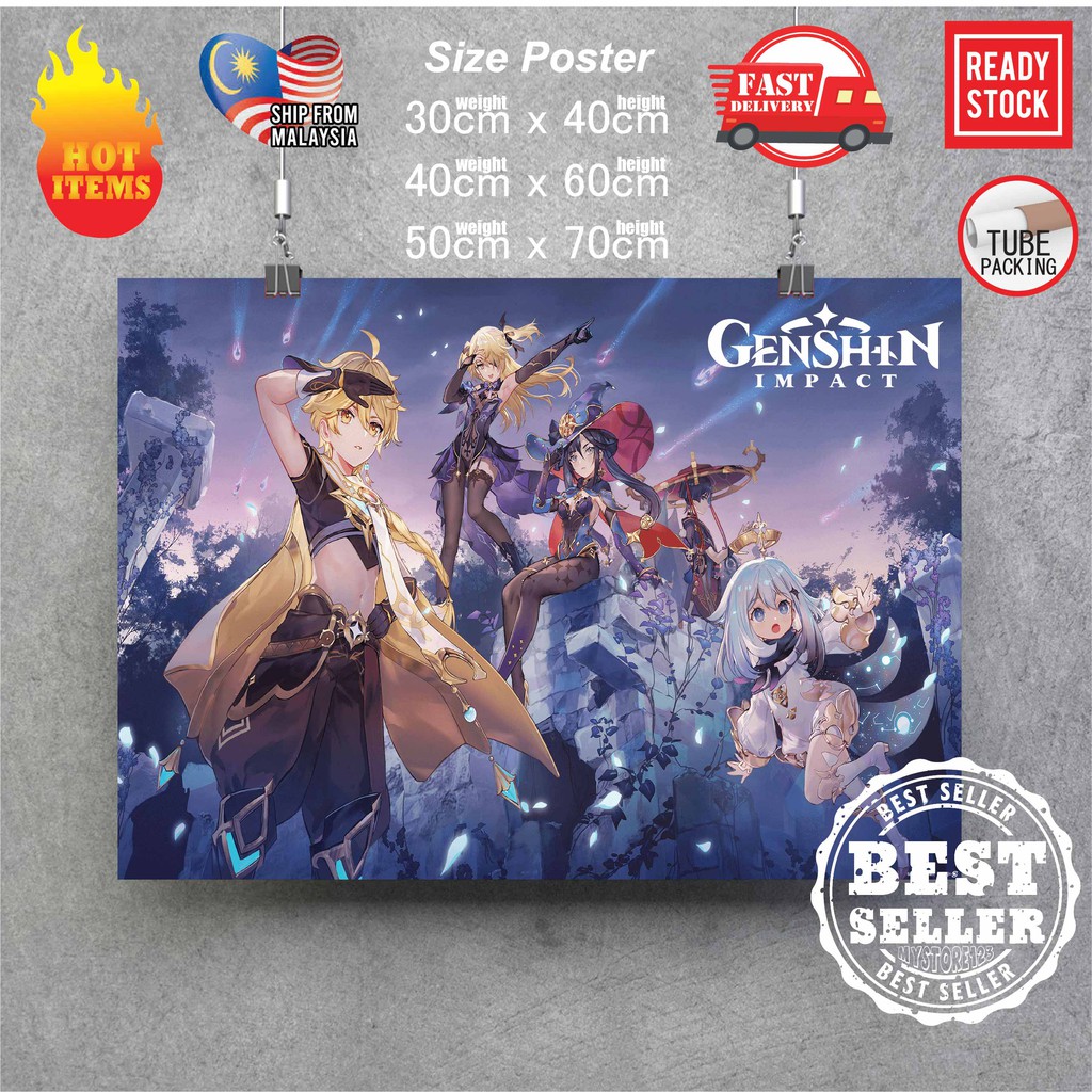 (Ready Stock) Genshin Impact poster Sticker Room decoration animation game poster wall art deco wall sticker poster
