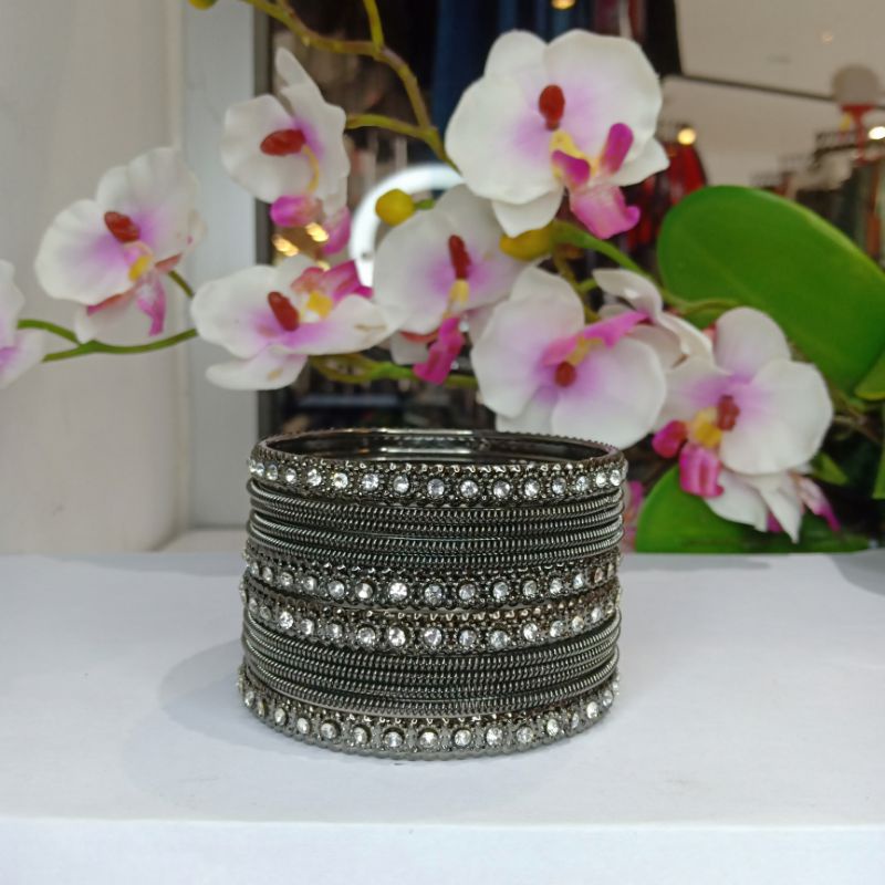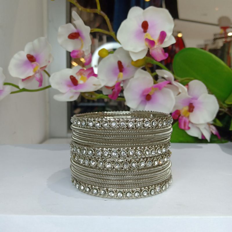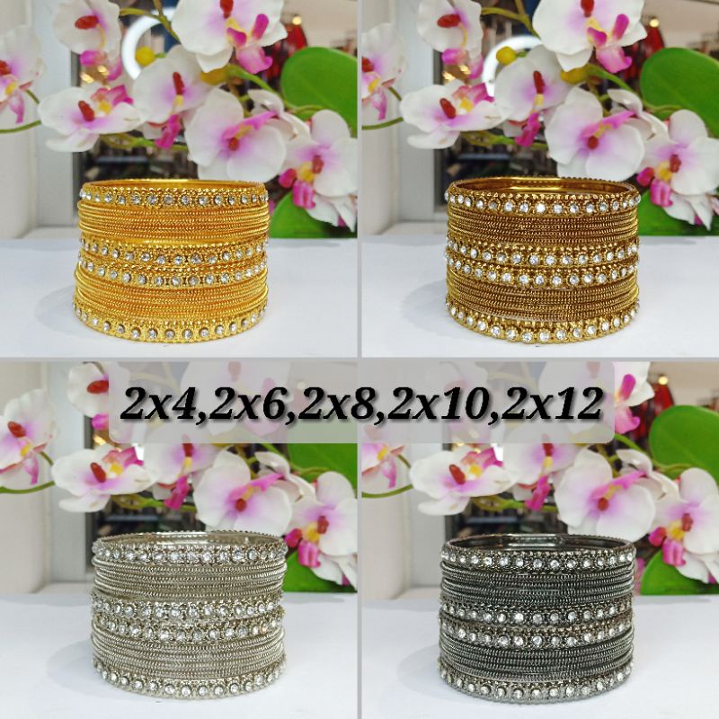 (Ready Stock) Indian Gold/Silver Color Fancy Stone Bangle/Gelang Set Both Hand 12 Pieces
