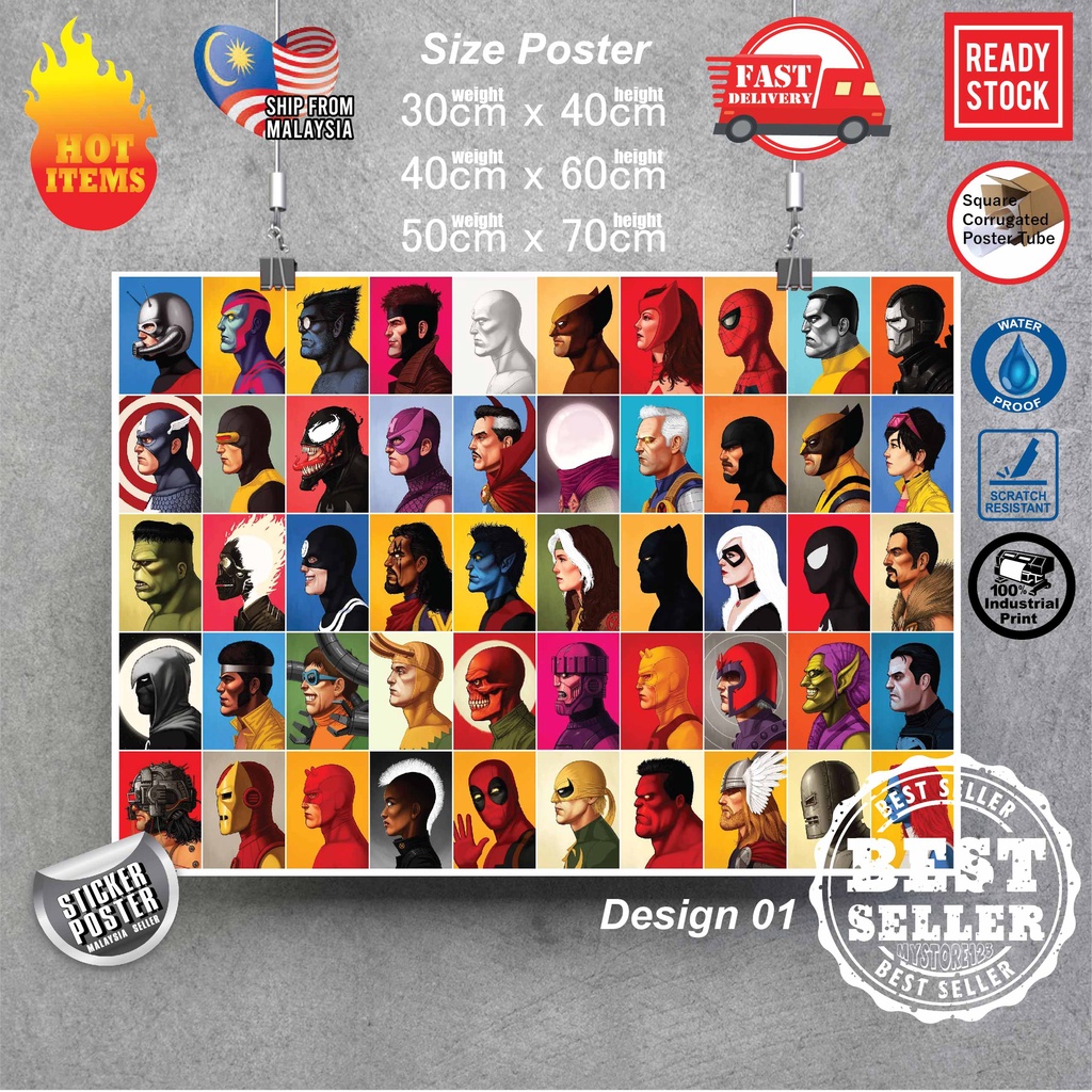 (Ready Stock) Marvel all characters poster Sticker home deco wall art poster sticker iron man spider man avengers