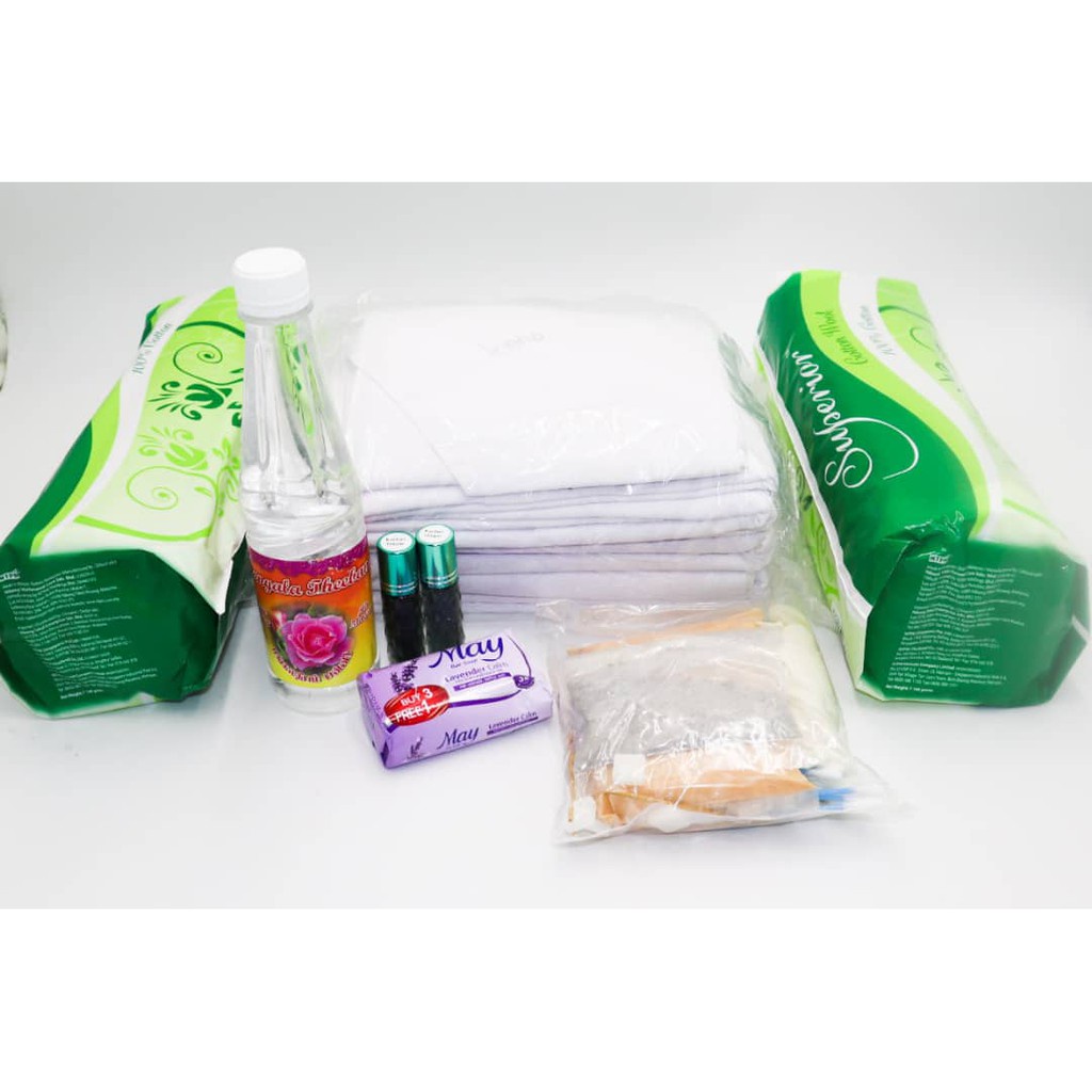 (Ready Stock) Set Lengkap Pengurusan Jenazah Lelaki/ Perempuan Mayat kain kapan telekung kapur barus air mawar