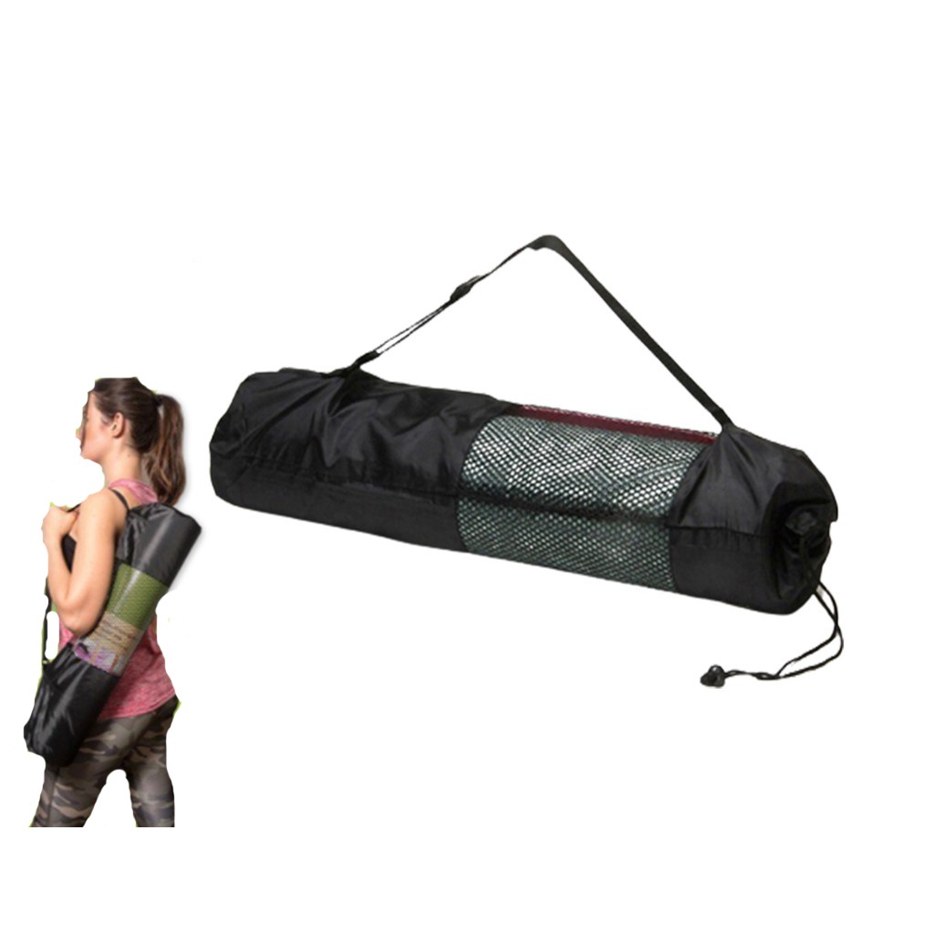 (Ready Stock) Yoga Mat Carrier Carry Bag Black Net Mesh Yoga Mat Bag Yoga Mat storage bag