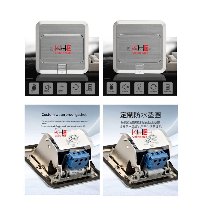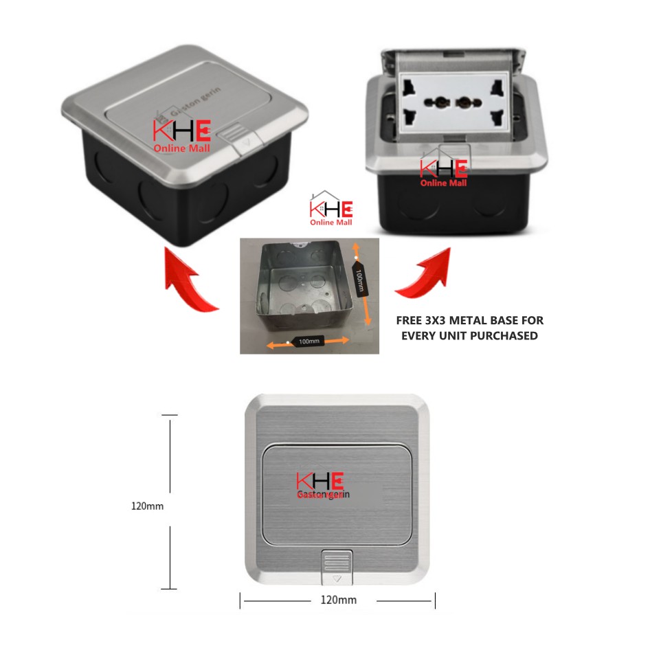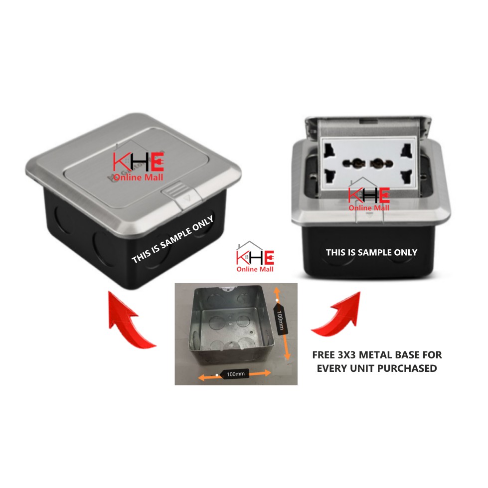 (Ready Stock)13A STAINLESS STEEL FLOOR SWITCH SOCKET + FREE 3X3 BASE METAL BOX