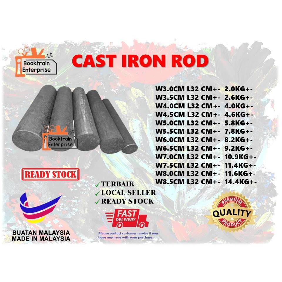 (Ready Stock)Besi Tuang Bulat Panjang /Cast Iron rod/Cast Iron/Width 4.0CM + - /LENGTH 32CM+ - /4.0 KG+ -
