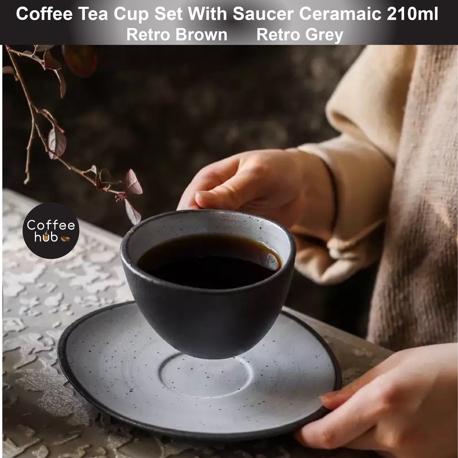 (Ready Stock)Creative Retro Coffee Tea Mug Ceramic Teacup Set Vintage European Style With Saucers Sets 210ml