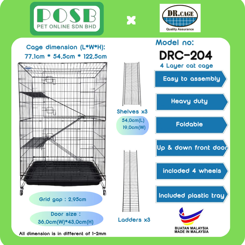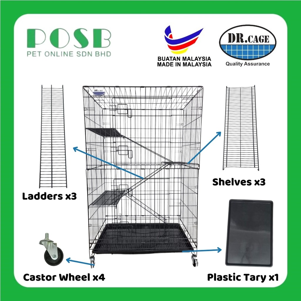 DR.CAGE DRC-204 2 Level Pet Cages Wrought Iron with Powder Coating / Cat Cages / Sangkar kucing 3 layer