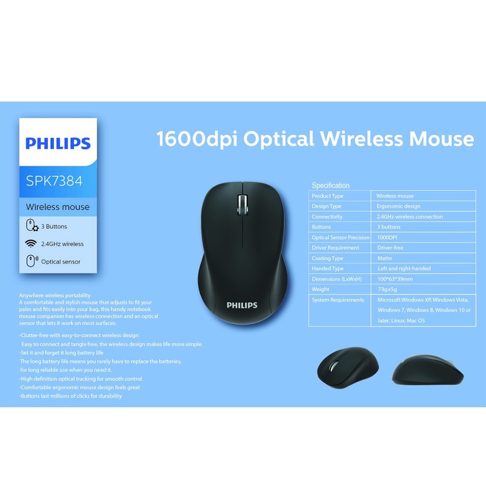 (Ready stock) Philips SPK7344 (M344) / SPK7384 (M384) 1000 DPI / 1600 DPI 2.4GHz Wireless Mouse