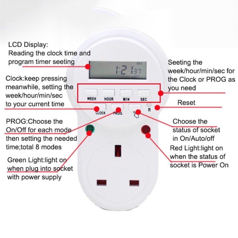 (Ready stocks)Malaysia Plug Electronic Programmable Timer Switch Weekly Digital Timer (ETE-63A)