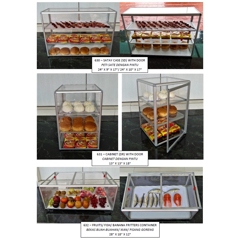 (SAIZ: 24" X 10" X 24") BEKAS MEE/ BEKAS BURGER/ BEKAS ROJAK DENGAN/ TANPA PINTU SLIDE [BEKAS ALUMINIUM SERIES A]