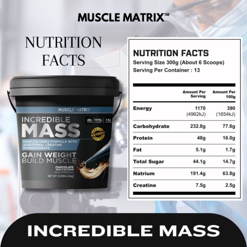 (SALES) Muscle Matrix Incredible Mass (4kg) - Mass Gainer, Sizing, Bulking, Mass Protein, Build Muscle, Susu Gym