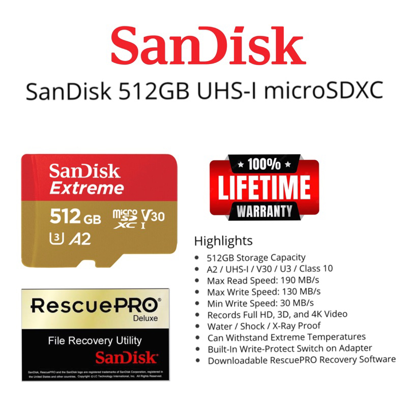 (SANDISK OFFICIAL)Sandisk Extreme 512GB UHS-i Micro sdxc 190mbs original Lifetime warranty