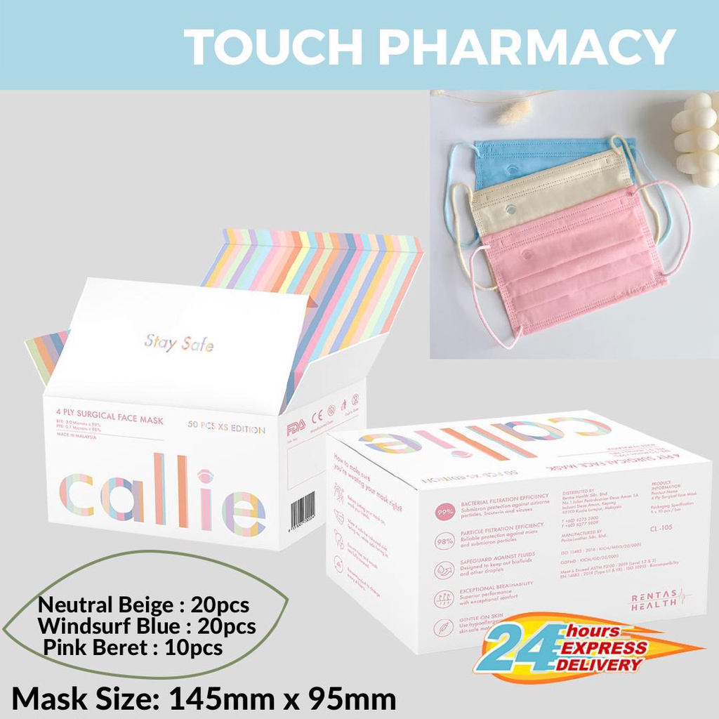 (SHIP FROM KL) KID CALLIE MASK - 4 Ply Surgical Kid Face Mask 1 box Topeng Muka