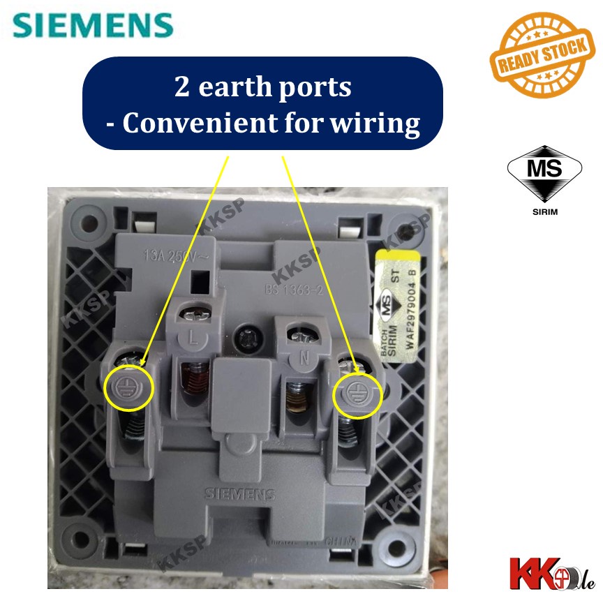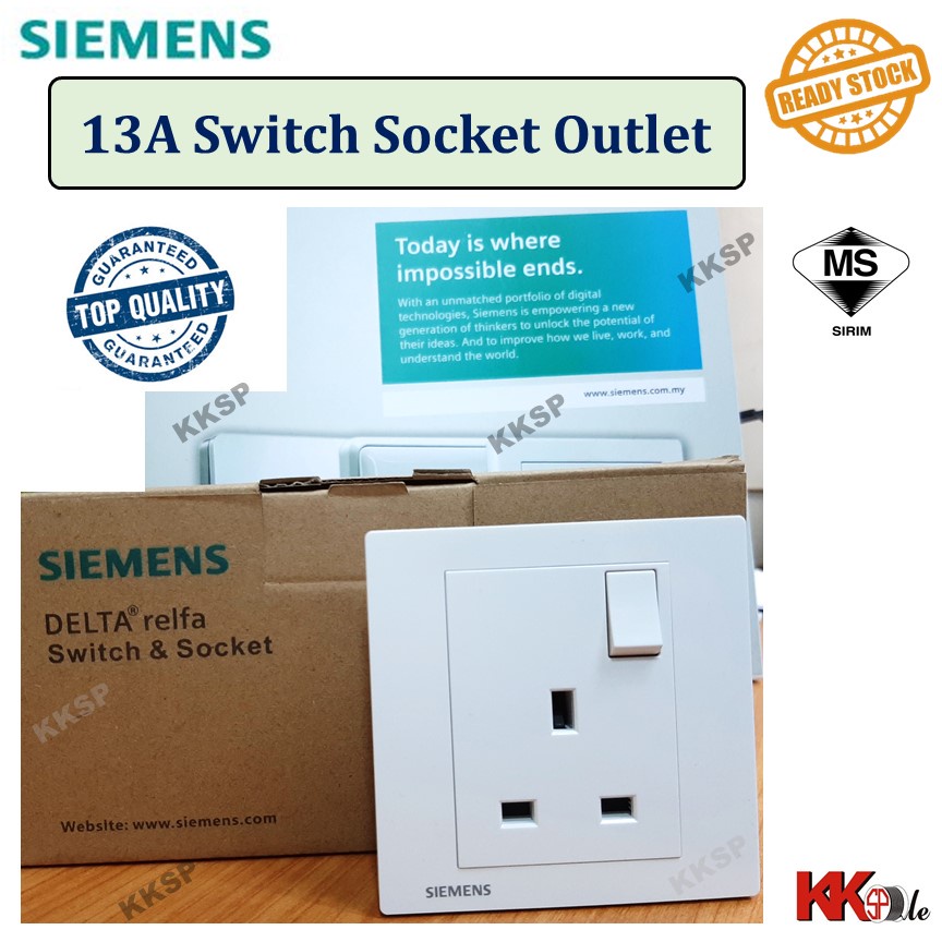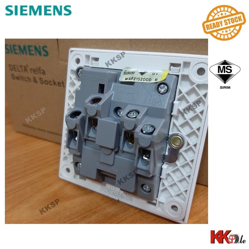 (SIRIM) Siemens DELTA Relfa 13A switched socket outlet Siemens 13A socket Siemens 3 flat pin plug switch - White