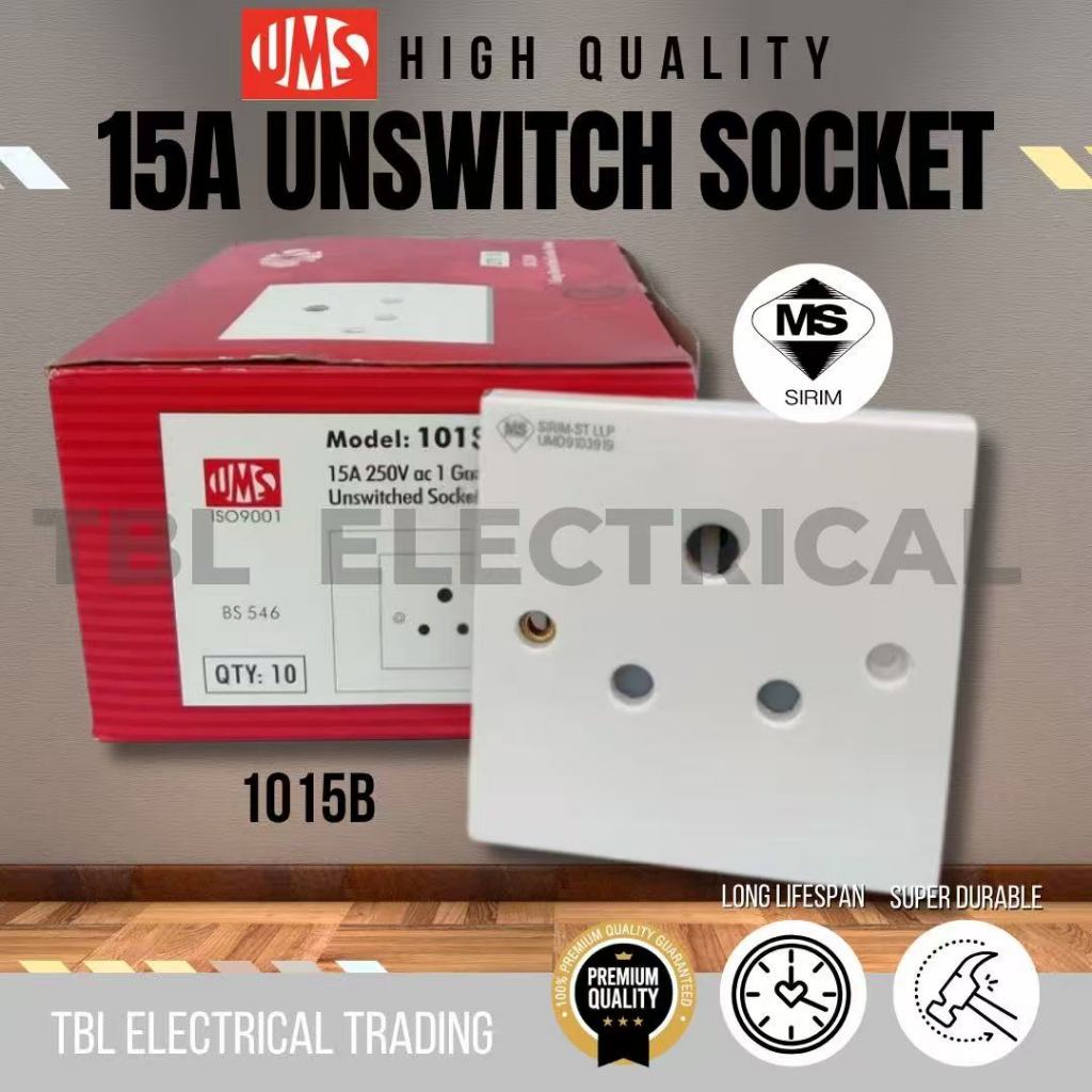 (SIRIM) UMS 15A UNSWITCHED OUTLET Socket Round Pin Soket 15amp Socket Switch Socket UMS suis