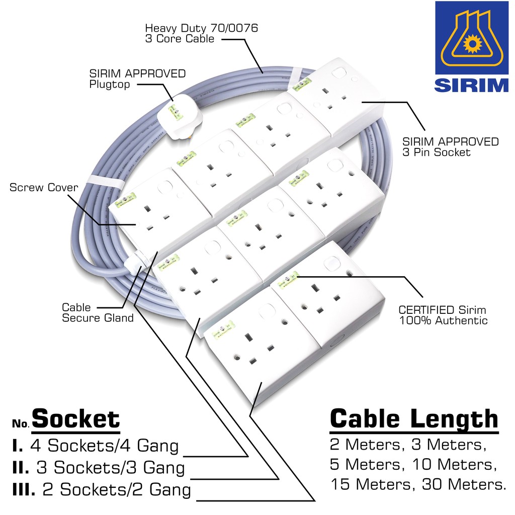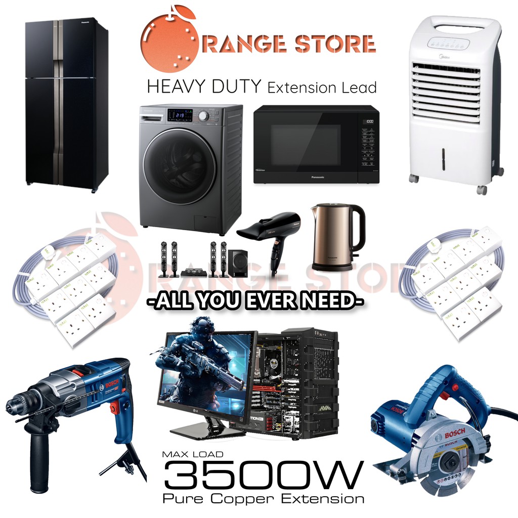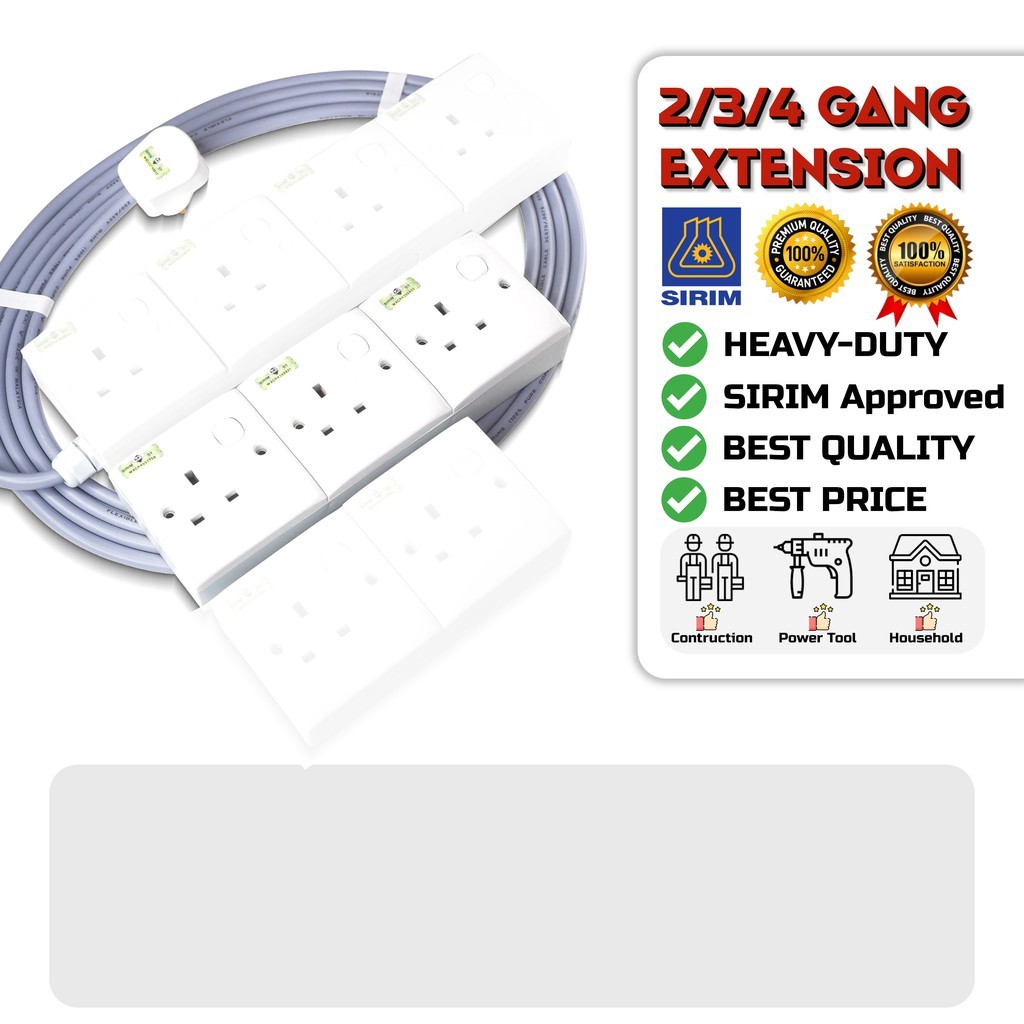 (SIRIM Approved) ME HEAVY-DUTY EXTENSION 100% Pure Copper Wire/Cable Socket Plug Extension 2/3/4 Gangs Max 3500W