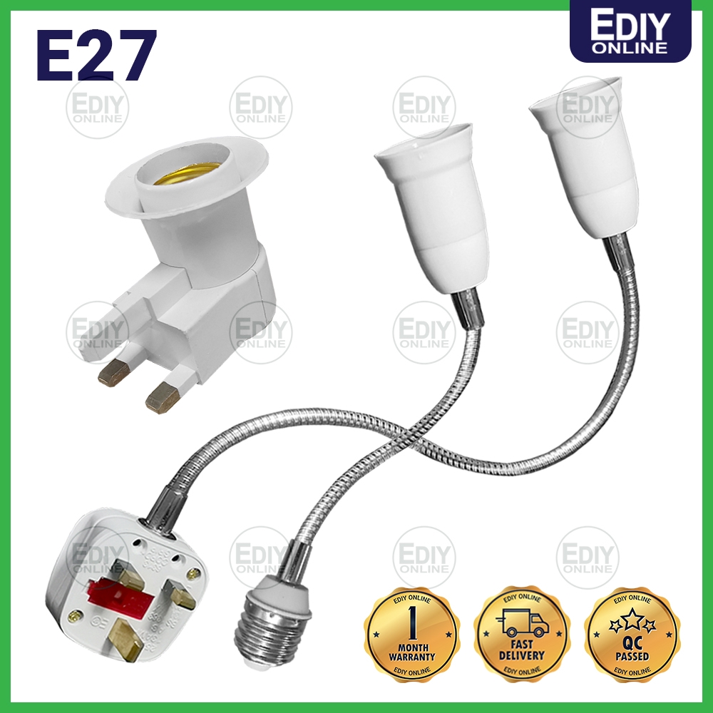 (SPRING) E27 TO E27 3 PIN FLEXIBLE SCREW LAMP PLUG IN ON OFF HOLDER EXTENSION MULTI PURPOSE FOR TABLE NIGHT LIGHT