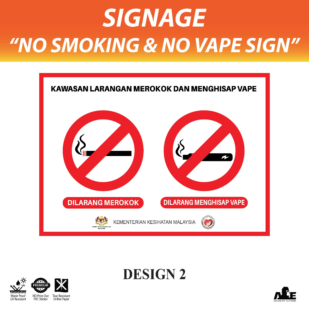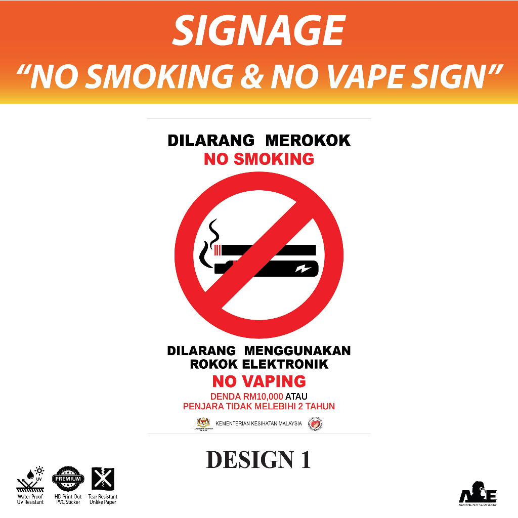 (STICKER ONLY) Dilarang Merokok | Dilarang Menggunakan Rokok Elektronik | No Smoking | No Vaping | Sign