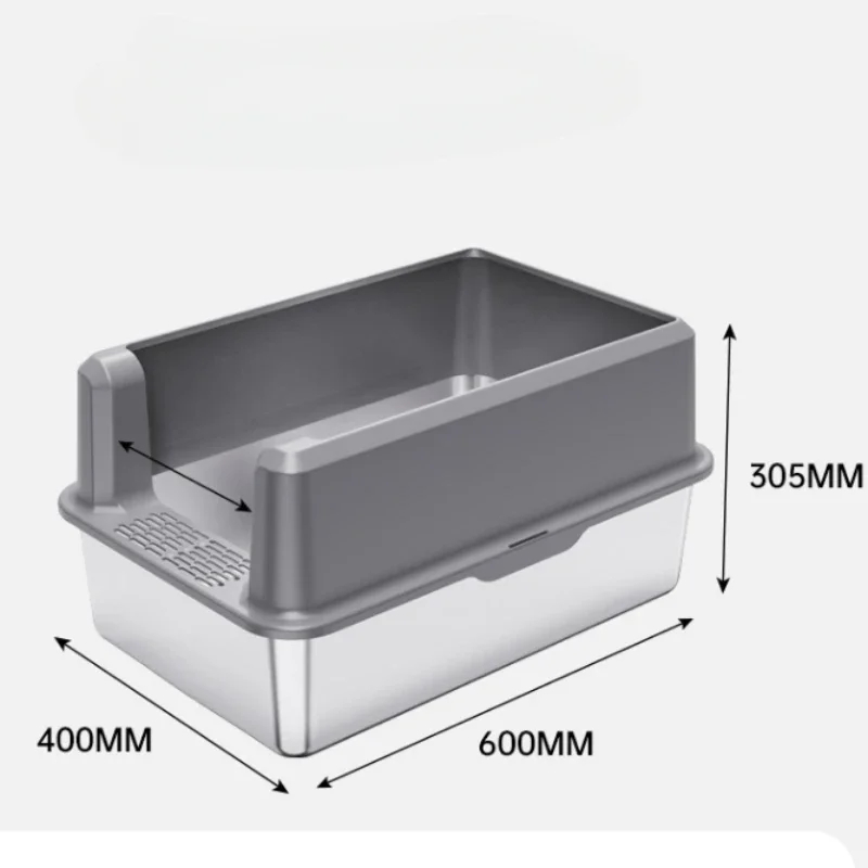 (Some Shipped From MY)Stainless Steel Cat Litter Box With Fence, Extra Large Litter Box For Large Cats, Metal Litter Box With High Side Walls, Non-Sticky, Leak-Proof, Easy To Clean, Kotak Sampah Kucing Keluli Tahan Karat