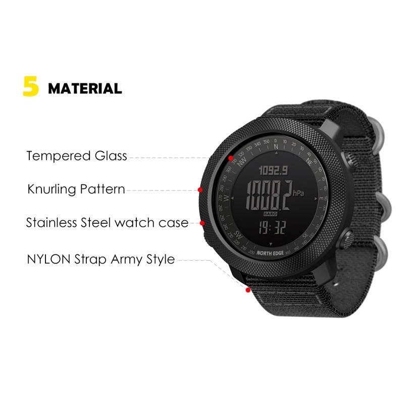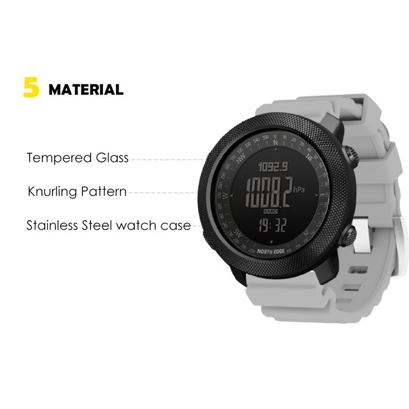 (Silicone Starp) North Edge Apache Men's Outdoor Sport Tactical Watches Digital Wrist Watch Multifunctional Smart Watch